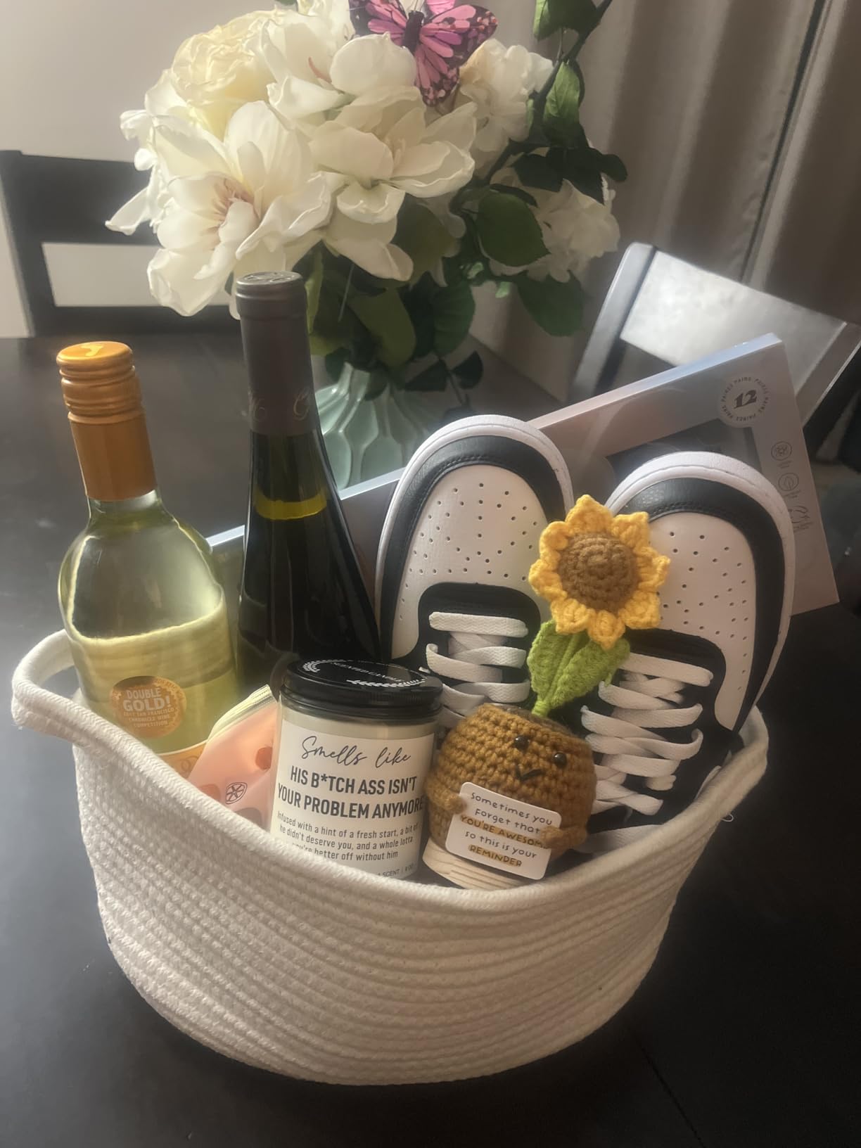Happyiren Cute Woven Storage Basket with Handle, Baskets for Gifts Empty, Gift Baskets for Mothers Day Birthday Baby Shower Raffle Burr Fundraiser Teacher, Decorative Organizer Box for Home Refresh